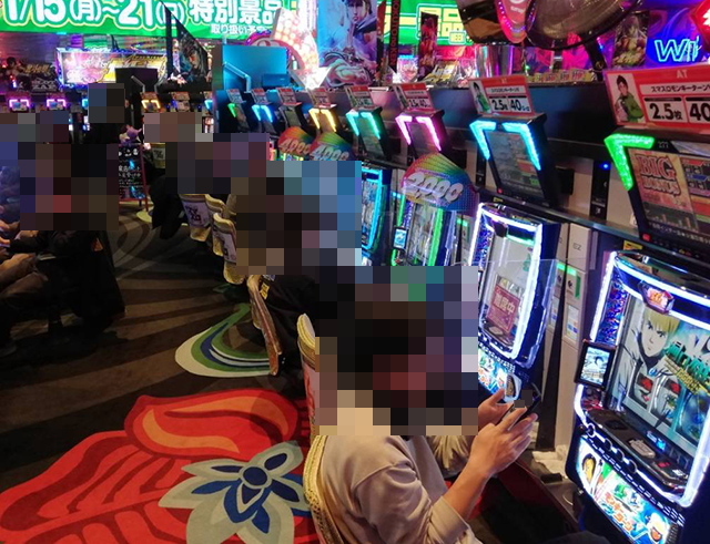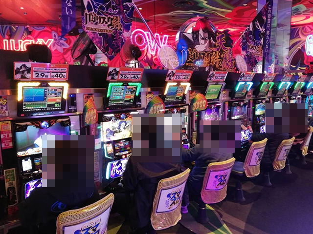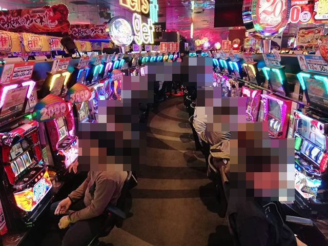 多彩な機種が設置されているパチスロ専門店であり、店内のあちこちで、パワフルに遊技を楽しむプレイヤーを目にした。