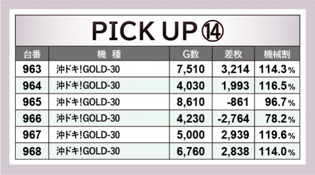 『パチスロ炎炎ノ消防隊』900番台+3,658枚や『パチスロ バイオハザード RE:2』919番台+4,530枚、『沖ドキ!GOLD-30』963番台+3,214枚など、まとまった出玉を獲得する台が多かった様子だ。こちらもマイナスに沈む台が少なく、ほとんど台がプラス差枚を記録しているのが特徴的。ファンが新年から口角を緩める展開を迎えられたことは、何よりも好印象である。