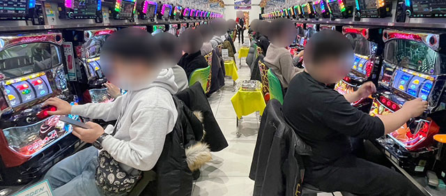 『パチスロ鋼鉄城のカバネリ』の島もまた、多くのファンで賑わっていた島の1つである。回転数と差枚数が比例する展開が目立っており、こちらでもレバーを力強く叩く光景が散見された。そして『スマスロ北斗の拳』からは、739~744番台の島が可能性を秘めていたようだ。『押忍!番長ZERO』も現役で活躍しており、根強い人気を誇る機種たちの活躍は目を見張るものがあった。