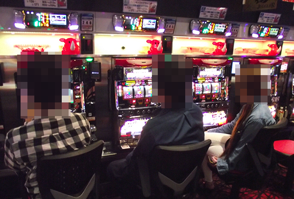 15時を過ぎたあたりの1000円/47枚パチスロでは、「バジリスク~甲賀忍法帖~絆」がとくに人気を集めており、笑顔のプレイヤーが多数。