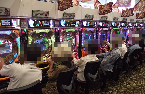 1円パチンコにおいても海物語シリーズが盛況で、楽しげな様子のプレイヤーが多かった。