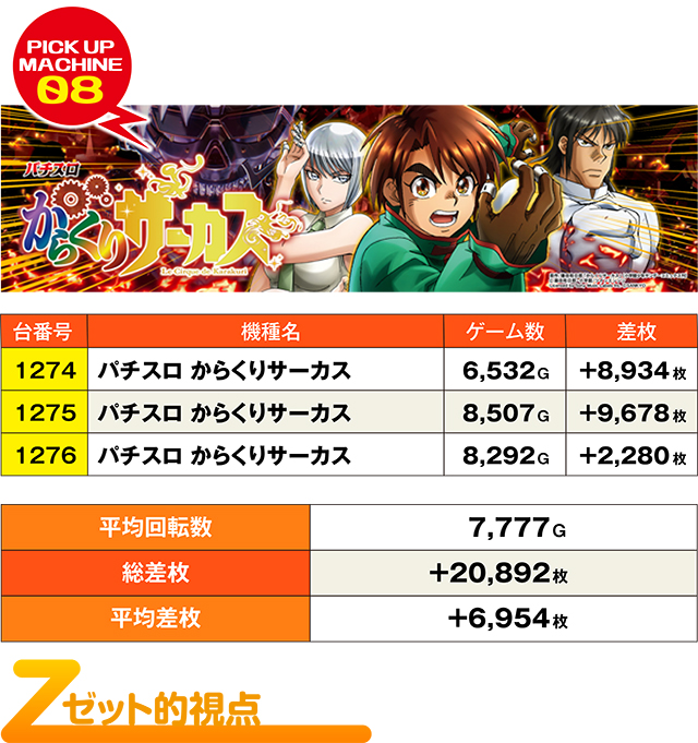 『パチスロ からくりサーカス』のとんでもない平均差枚に驚かれた方も少なくないはず。3台の並びのうち、2台が8,900枚を超えていたのだからこの平均値にも納得…!