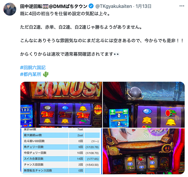 六国制圧を目指すぱちタウン軍の武将・田中逆回転。とても武将には見えない彼が、それぞれ異なる特性を持つ「六か国」の制圧を目指し実戦、そして取材に奮闘する物語である。今回の舞台は、12月に32周年を迎え、ますます成熟傾向にある「ウエスタン一之江店」だ。