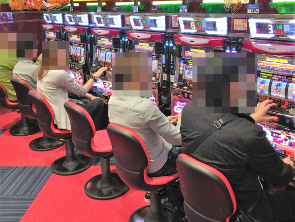 遊パチコーナーや1000円480玉パチンコでは、じっくり遊技を楽しむプレイヤーが多かった。