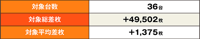 『ゴーゴージャグラー3』は3台並びで3台ともがプラス!3台の平均も+1,181枚とまずまずの結果を残してくれた。