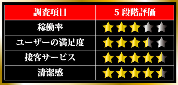 落ち着いた環境で心から遊技を楽しめる環境が整った店舗であった。