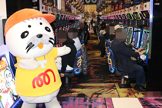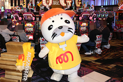 ホール全体を盛り上げるため、その愛くるしさを存分に発揮。大人気キャラクターの来店に訪れたプレイヤーの気持ちもさらに昂っていたに違いない。