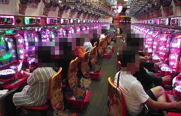 午後の4円パチンコをみてみると、「CR牙狼 魔戒ノ花」や「ぱちんこCR真・北斗無双」に、楽しげな様子のプレイヤーが多数。