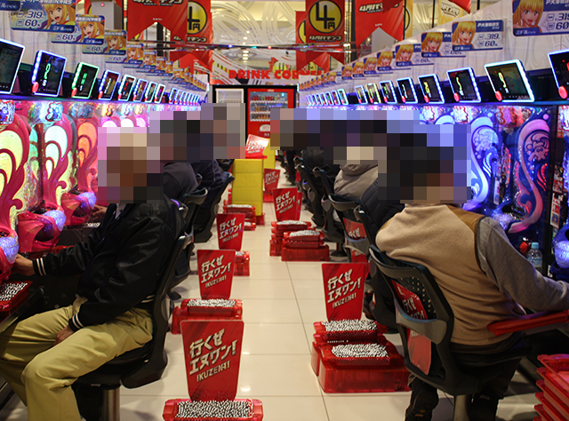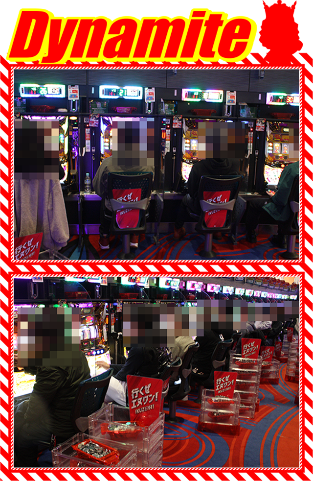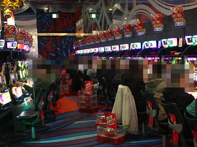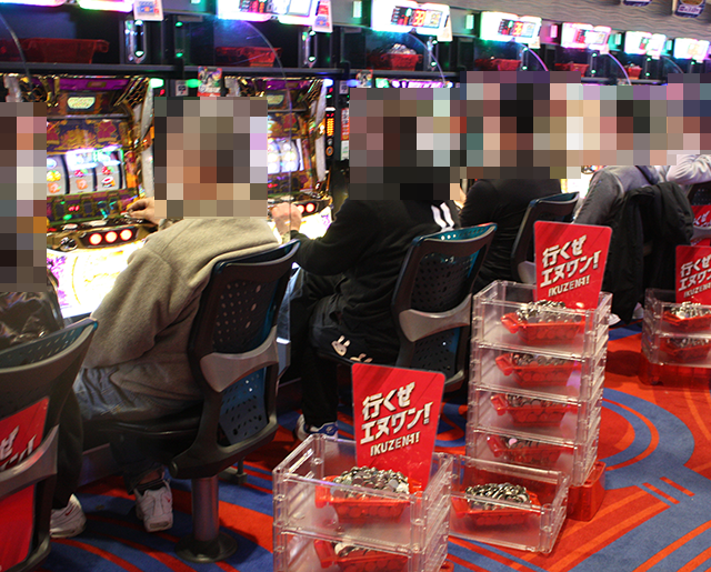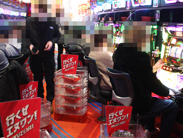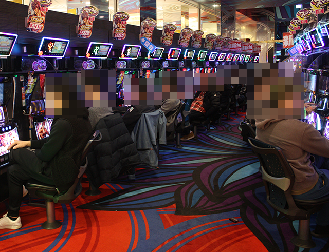 ほとんどの台が埋まるほどに人気があり、シマ内のあちこちで笑顔をキャッチ。