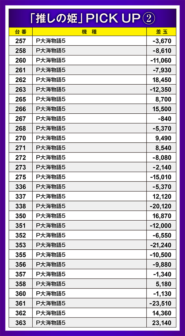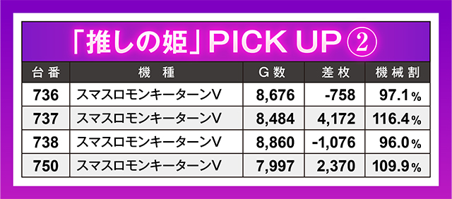 直近2回は『エヴァンゲリオン』シリーズの活躍が目立っていたものの、今回は『海物語』シリーズが並ぶ2ボックスが盛り上がりを見せていたように感じた。マイナスで終わった台もあるにはあったが、10,000発オーバー記録が複数台に渡って生まれていたことに注目したい。