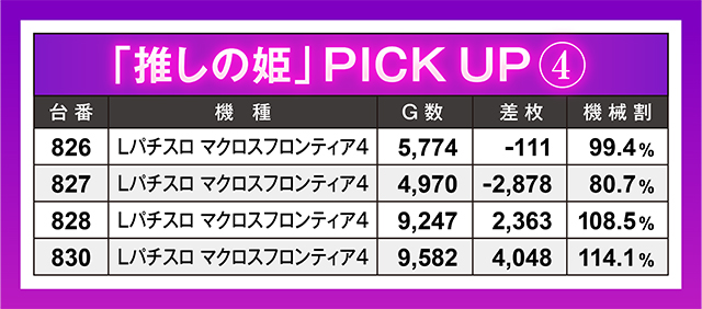 勝率は50%と、伸び悩んだ感のある『Lパチスロ マクロスフロンティア4』。6,000G以上回された2台がプラスに、回されなかった2台がマイナスだったということは…!?