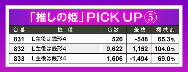 3台中2台がマイナスという不本意な結果で終わってしまった。しかしマイナスの2台はどちらも2,000Gも回されておらず、本領を発揮できぬまま閉店を迎えてしまったようだ。