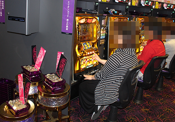 「スーパービンゴネオ」や「ミリオンゴッド-神々の凱旋-」などにも魅力的な場面を目撃。機種のポテンシャルを上手く引き出しているような姿もみられ、楽しそうな雰囲気に包まれていた。