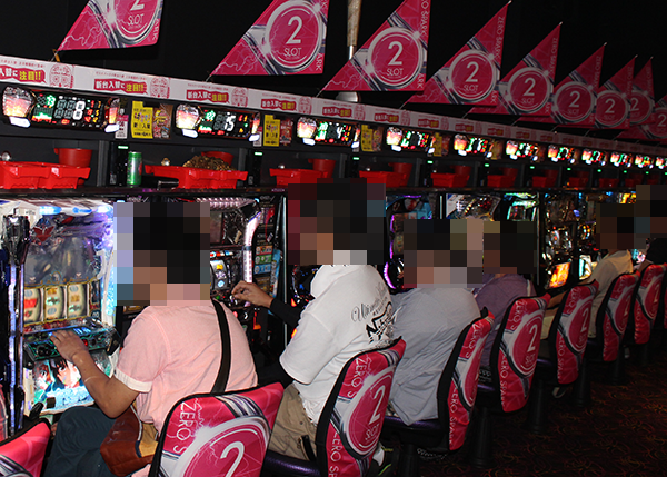さまざまな機種が設置されている2円パチスロも高稼働。