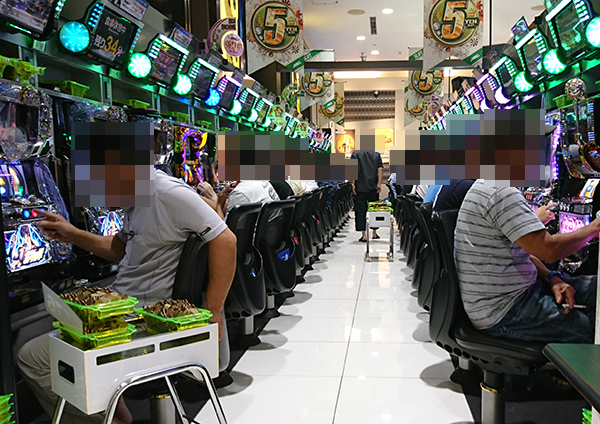 5円パチスロや1円パチンコの稼働率も高く、朝イチからホール全体に大きな活気が感じられた。