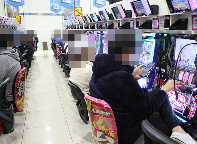 パチンコも機種のスペックに関係なく、さまざまな場所に遊技を楽しむ姿があった。