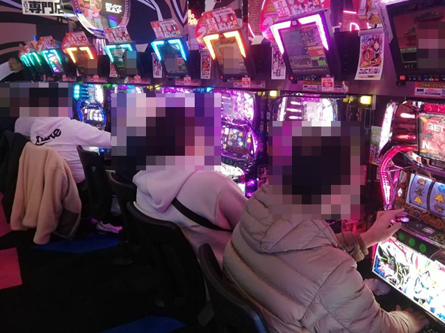 店内をまわっていくと、スマスロや6.5号機など、さまざまな場所で楽しそうに遊技をおこなっているプレイヤーの姿が目に入ってきた。