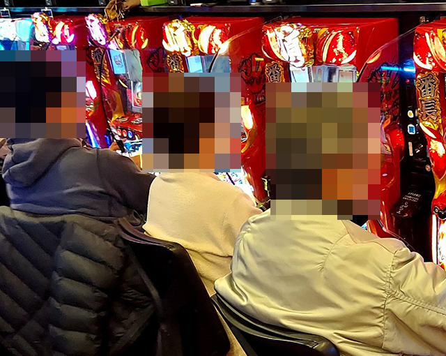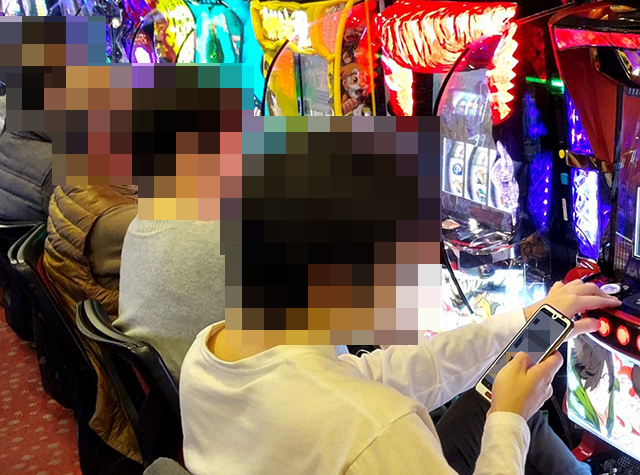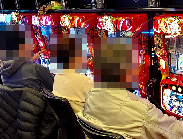 夕方頃に確認したときには、遊技を満喫しているようなプレイヤーが並んでいた。