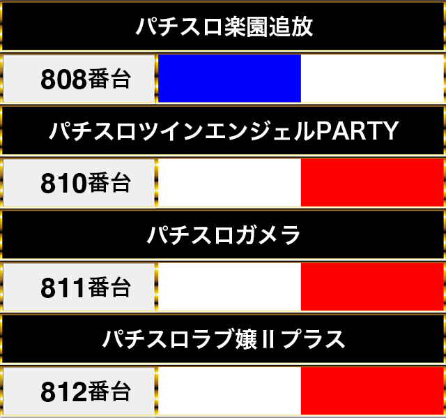 810番台の『パチスロツインエンジェルPARTY』や811番台の『パチスロガメラ』などにもプラスptの台が並ぶ場所があった。
