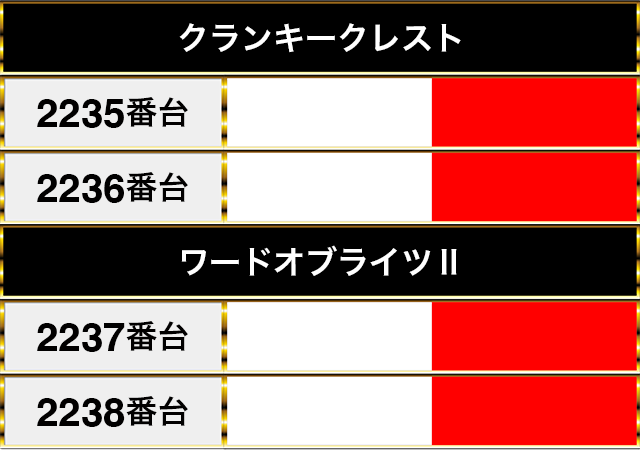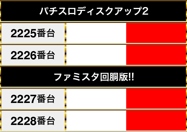 最終的には『パチスロディスクアップ2』の2225番台から『ファミスタ回胴版!!』の2228番台までが並んでプラスpt!!