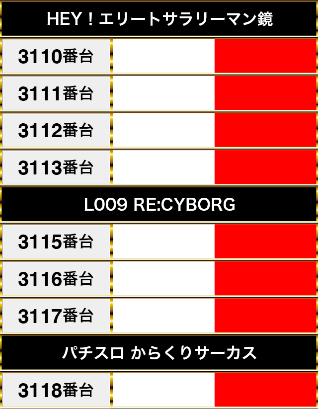 『HEY!エリートサラリーマン鏡』の3110番台から『パチスロ からくりサーカス』の3118番台までにも笑顔が広がっており、感じられる雰囲気は明るかった。