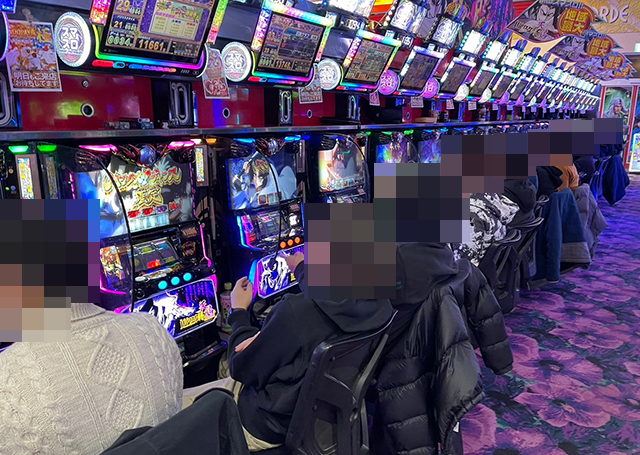パチスロの状況をうかがうと、『スマスロ北斗の拳』でパフォーマンスを披露するプレイヤーが目立っていた。