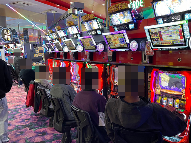 スマスロやボーナスタイプ、6.5号機など、さまざまな場所に華やかな光景が広がっていた。