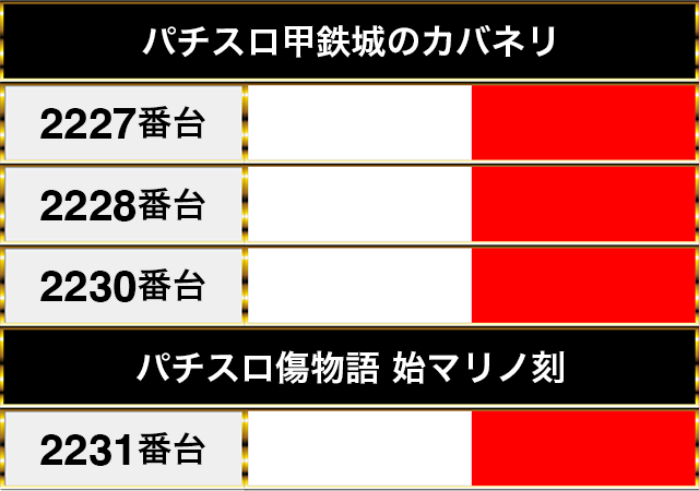 『パチスロ甲鉄城のカバネリ』の3台は『パチスロ傷物語 始マリノ刻』の1台と並んでプラスpt!!