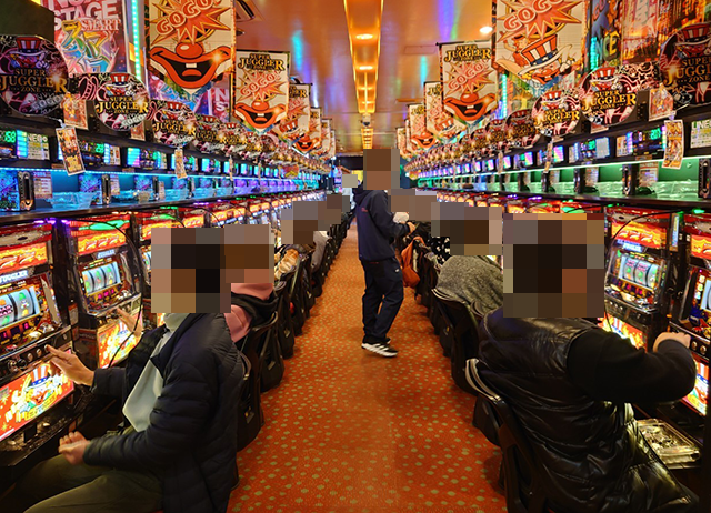 たくさんのプレイヤーが遊技を楽しみ、活気に満ちていた『アイムジャグラーEX』!