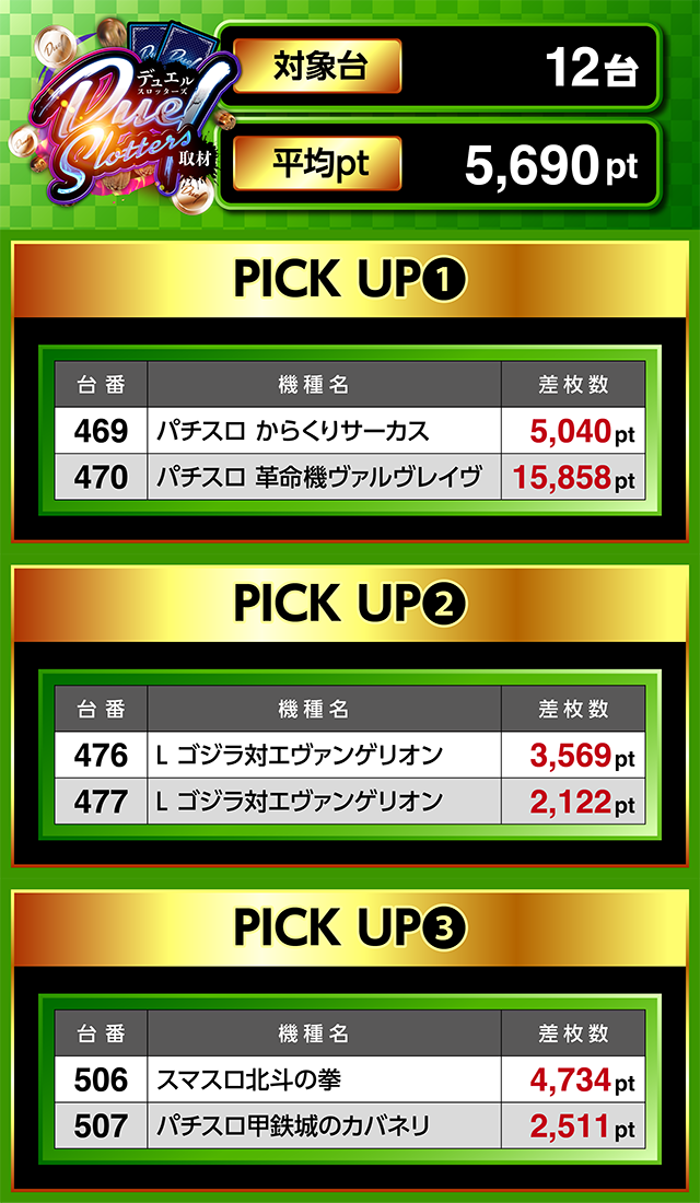 469番台の「パチスロ からくりサーカス」は5,040pt、470番台の「パチスロ 革命機ヴァルヴレイヴ」は15,858pt!