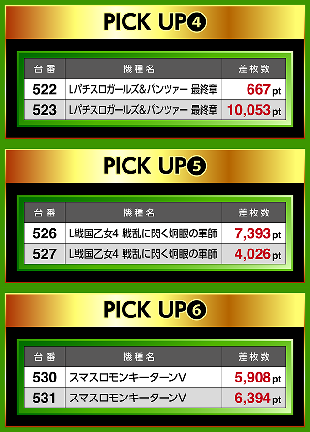 「Lパチスロガールズ&パンツァー 最終章」にもプラスが続き、523番台は10,000ptオーバーとなった。