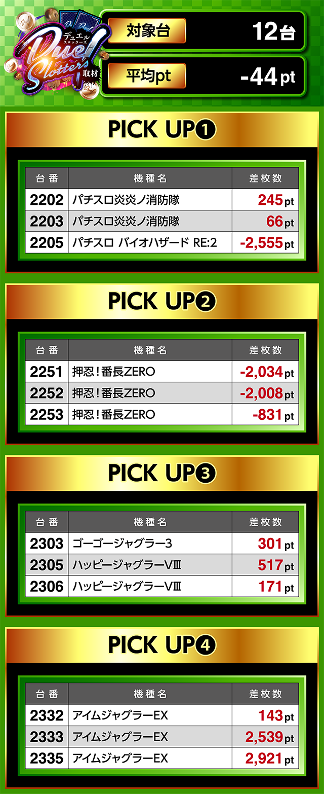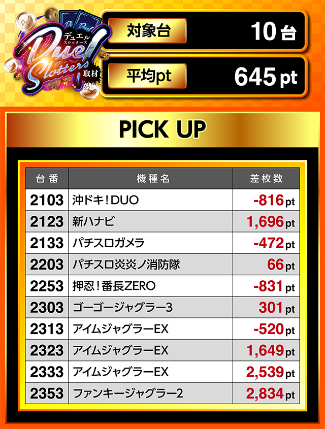 PICK UP数字・2353番台「ファンキージャグラー2」…2,834pt
