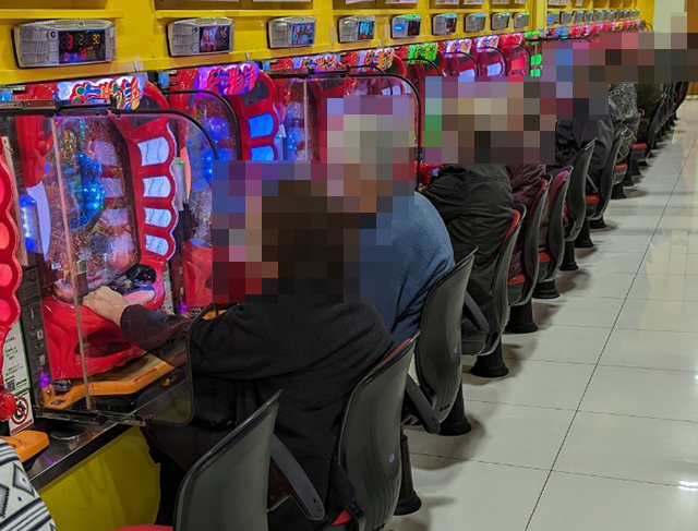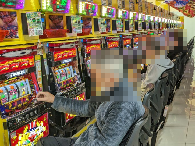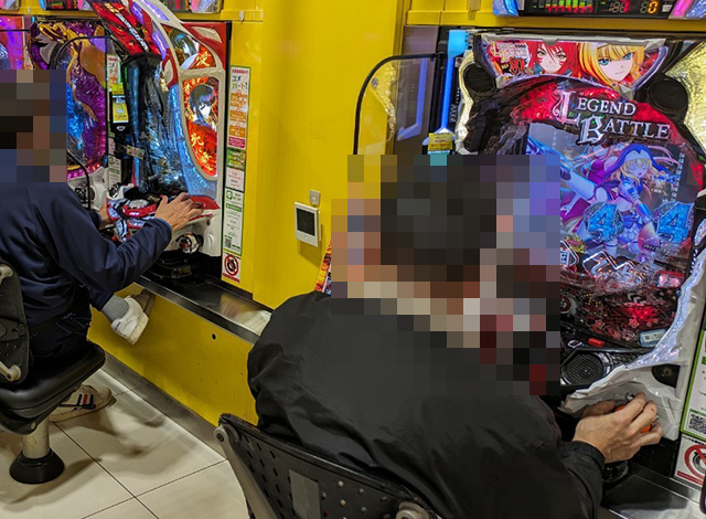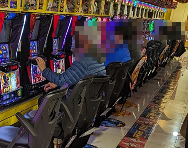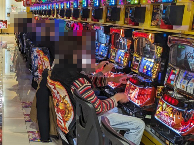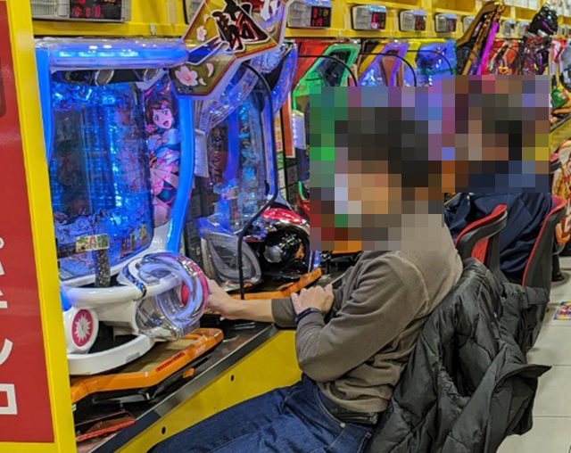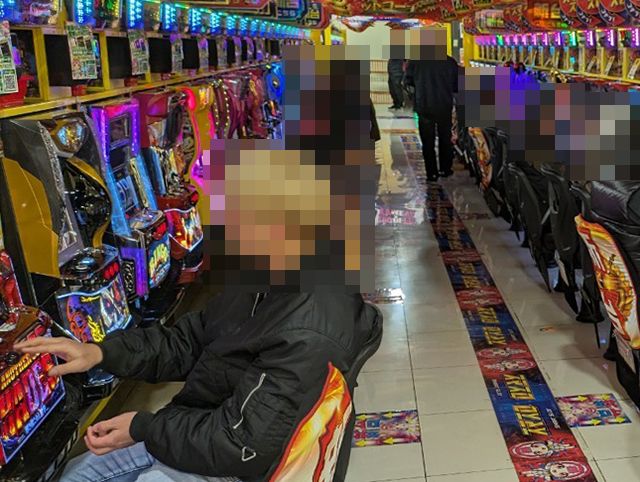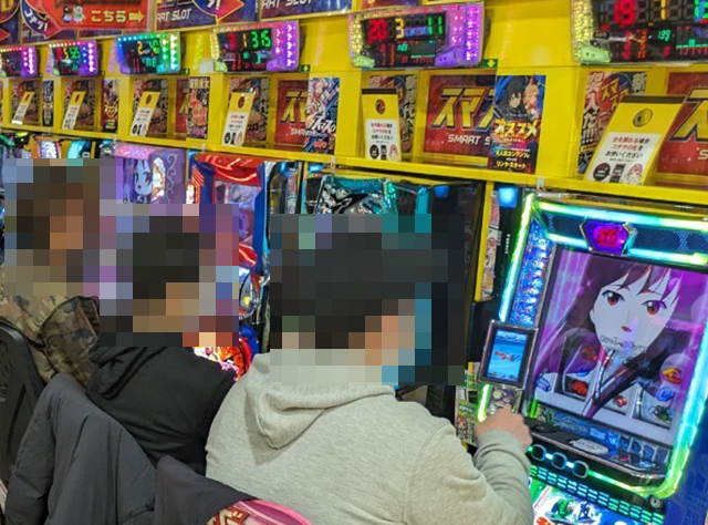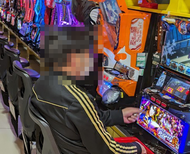 「SLOTバジリスク~甲賀忍法帖~絆2」にも持ち玉を使い、うれしそうに遊技をおこなっている姿があった。