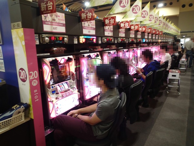 朝から盛り上がりをみせていた20円スロットコーナーは、新台「SLOT魔法少女まどか☆マギカ2」を中心に高稼働をみせていた。人気機種の新作ということで人気は衰えず、多くのプレイヤーが笑顔をのぞかせながら遊技を楽しんでいた。