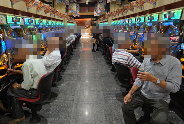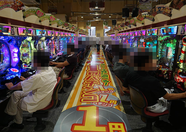 4円パチンコは海物語シリーズを中心に、大にぎわい。「CR大海物語スペシャル」がひときわ人気を集めており、華やかな光景が広がっていた。