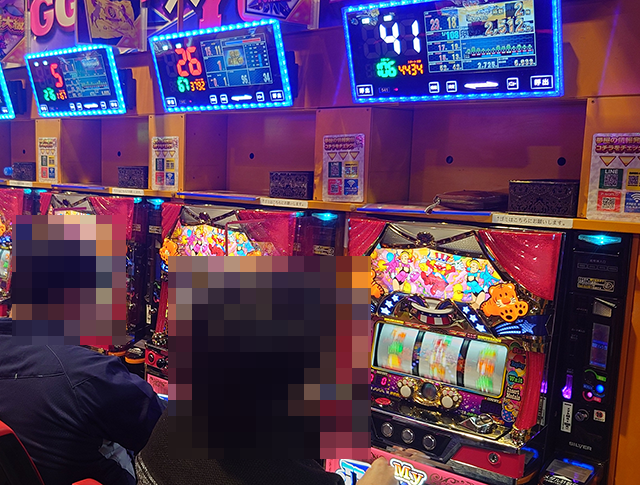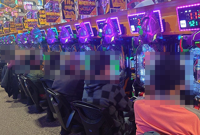 16時頃には、うれしそうに遊技をおこなうプレイヤーがズラリと並び、複数台のバトルボーナスが95回を上回っていた。