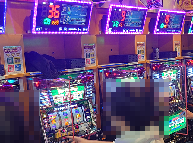取材時に、「マイジャグラーⅤ」では41回、「ハッピージャグラーVⅢ」では36回のボーナスに当選している台をみつけた。
