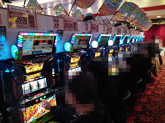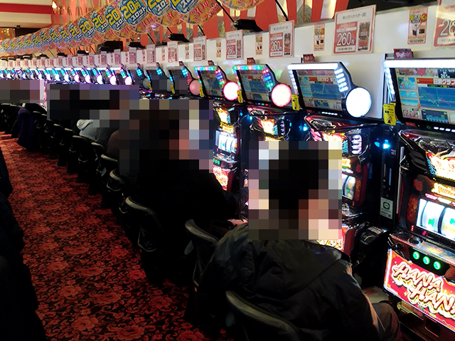 15台中9台が稼働して、シマ内は華やかな雰囲気に包まれていた。