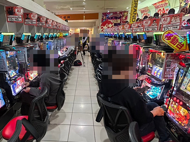 ホールのあちこちで楽しげな場面がみられるなかで、パチスロコーナーに注目をした。