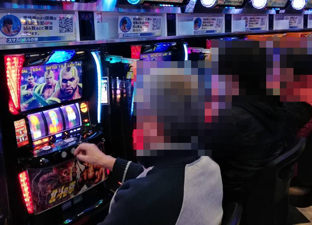 「スマスロ北斗の拳」においてもプレイヤーが活躍! 2箱クラスの持ち玉を使い、笑顔で遊技をおこなっていた。