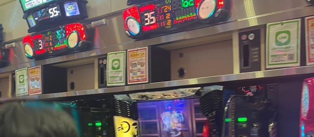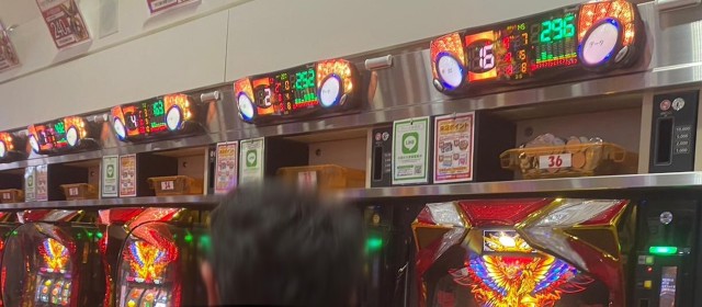 沖スロコーナーでは『沖ドキ!2-30』『ハナハナホウオウ~天翔~-30』の頭上にメダルが詰まった様子が目立った。