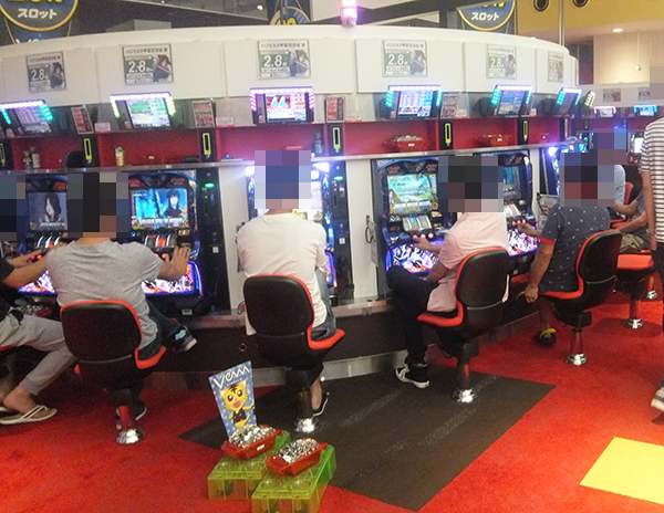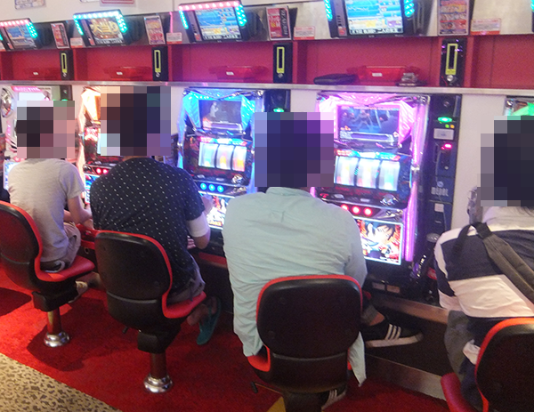 15時頃の20円パチスロでは、「バジリスク~甲賀忍法帖~絆」や「パチスロBLOOD+ 二人の女王」が大にぎわい。