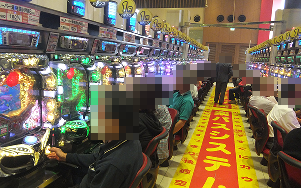 1円パチンコと0.5円パチンコで遊技を楽しんでいるプレイヤーも多く、取材中は終始、にぎわっていた。