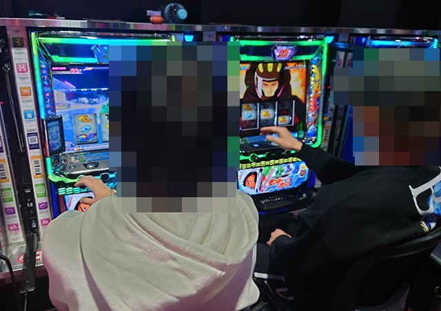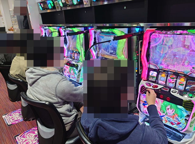 『パチスロ炎炎ノ消防隊』や『パチスロ交響詩篇エウレカセブン HI-EVOLUTION ZERO TYPE-ART』などにも笑顔のプレイヤーがおり、感じられる雰囲気は明るかった。