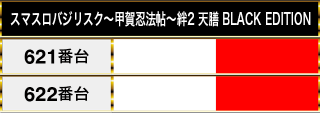 『スマスロバジリスク~甲賀忍法帖~絆2 天膳 BLACK EDITION』の621番台と622番台もプラスptを記録した。