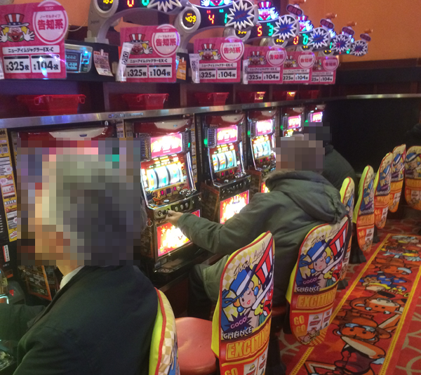 パチンココーナーと比べてしまうとパチスロコーナーの稼働はやや控えめだが、それでも遊技するプレイヤーは多数。人気のAT、ART機だけでなくジャグラーシリーズやハナハナシリーズなどボーナスタイプの設置割合が多いのもポイントだ。