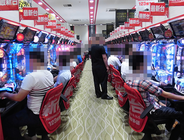 1円パチンコのにぎわいも大きい。