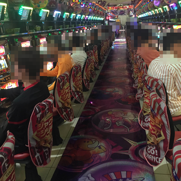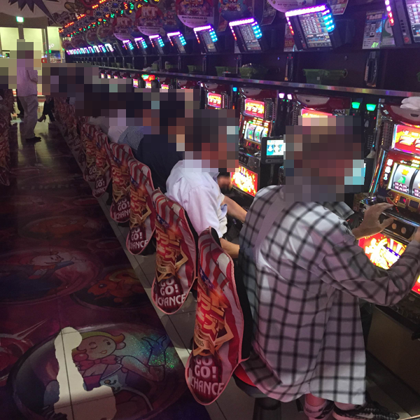 「ニューアイムジャグラーEX」において、数多くの楽しそうなプレイヤーを確認できた。