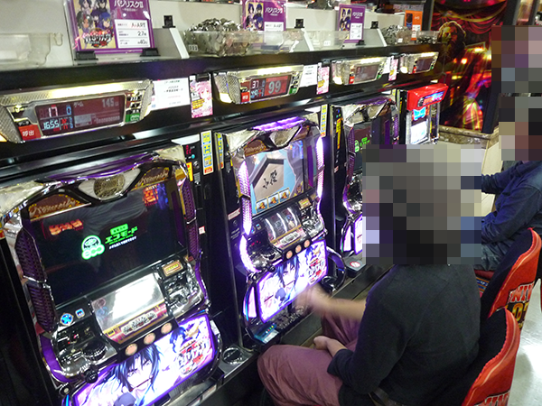 16時頃の20円パチスロをみてみると、AT・ART機では「バジリスク~甲賀忍法帖~絆」や「SLOT魔法少女まどか☆マギカ」が盛況。理想的ともいえる展開で遊技をおこなっているプレイヤーが多く、大きくにぎわっていた。