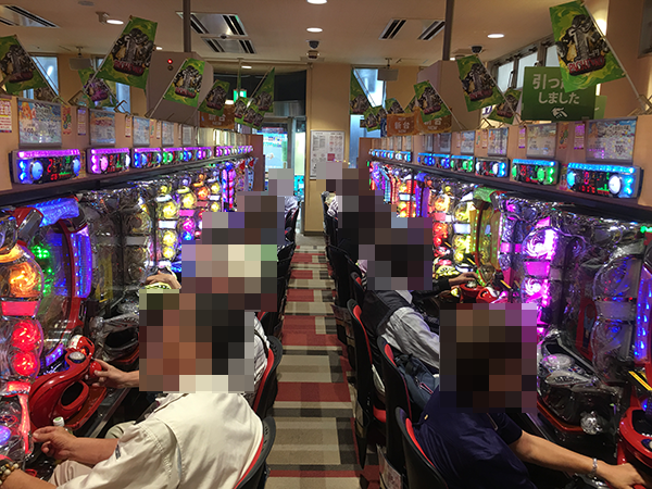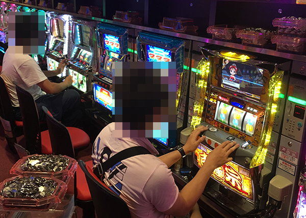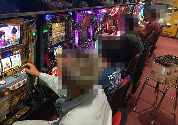 16時頃の20円パチスロで、大きくにぎわっていたのが「バジリスク~甲賀忍法帖~絆」と「押忍!サラリーマン番長」だ。理想的ともいえる展開で遊技をおこなっているプレイヤーの姿は、ひときわ楽しそうであった。